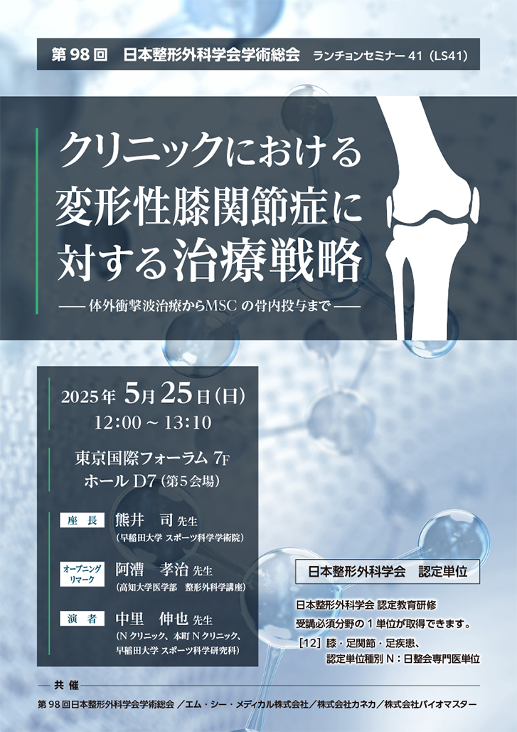 2025年5月22日(木)~25日(日)に東京国際フォーラム・JPタワー ホール&カンファレンスで開催されます第98回日本整形外科学会学術総会にて、ランチョンセミナーの共催、企業ブースの出展を行います。
